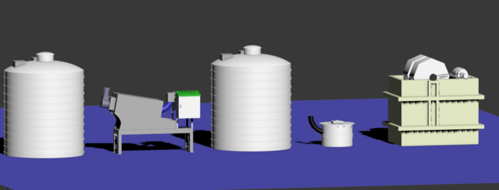 通过螺旋压榨脱水后,产生的污水,排入后端配套生物净水系统中,达到排放标准。