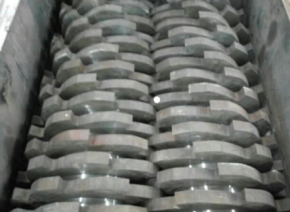 ®机壳的顶部为进料口,旋转轴安装在机壳内,旋转轴上设置有若干刀条形成旋转刀条组,旋转轴的输入端与电机连接。