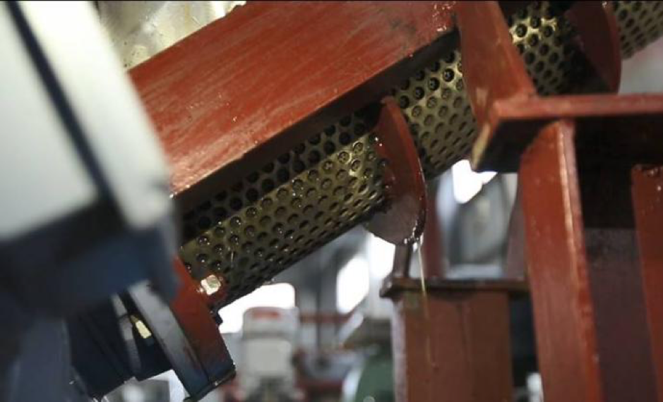 ®通过螺旋压榨,将分解后产生的污水进行螺旋输送,同时通过螺旋压缩段后对渣子进行压榨脱水,产生的污水进入后端隔油池中,达到隔油池排放标准。